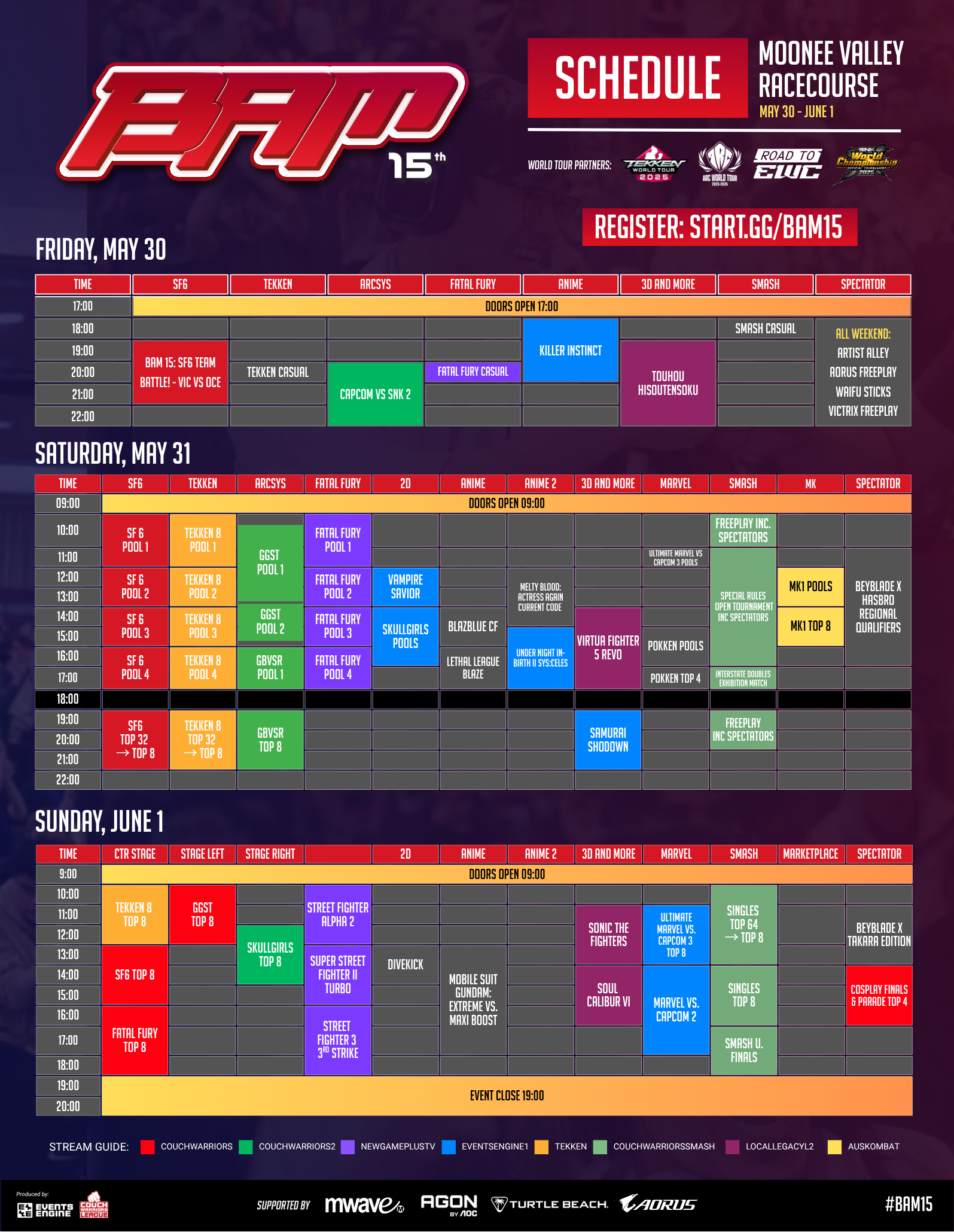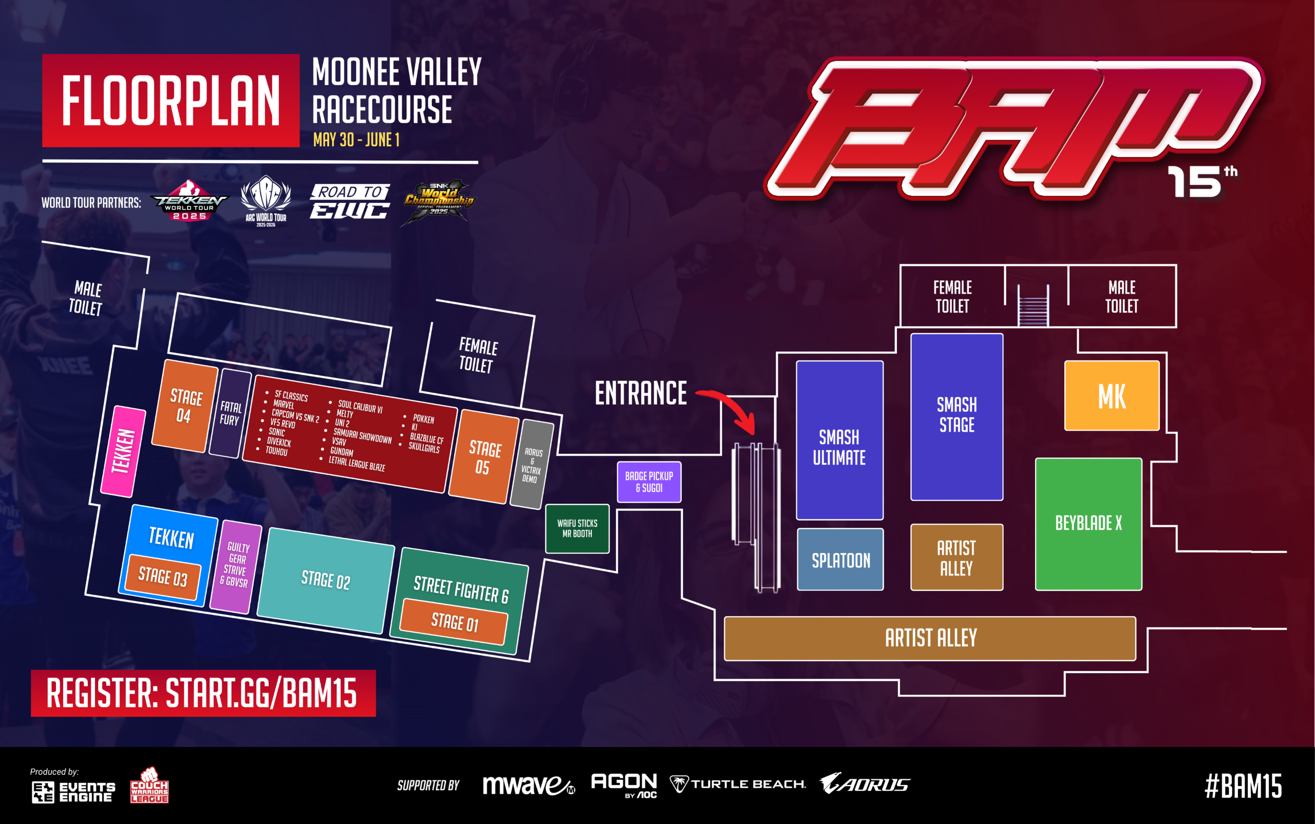 BAM is Australia's largest fighting game major, hosting national championships across the whole fighting game community.